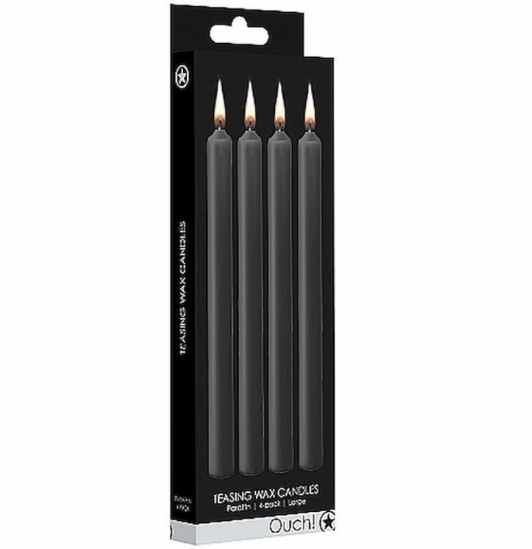 Teasing Wax Candles – набор из 4-х восковых свечей черного цвета. Усильте ощущения, увеличьте адреналин, и насладитесь беспрецедентным возбуждением, когда капающий горячий воск будет касаться кожи, не вызывая ожогов. Восковые BDSM-свечи в сочетании с повязкой на глазах или другим приспособлением для бондажа гарантируют увлекательное приключение всем участникам.