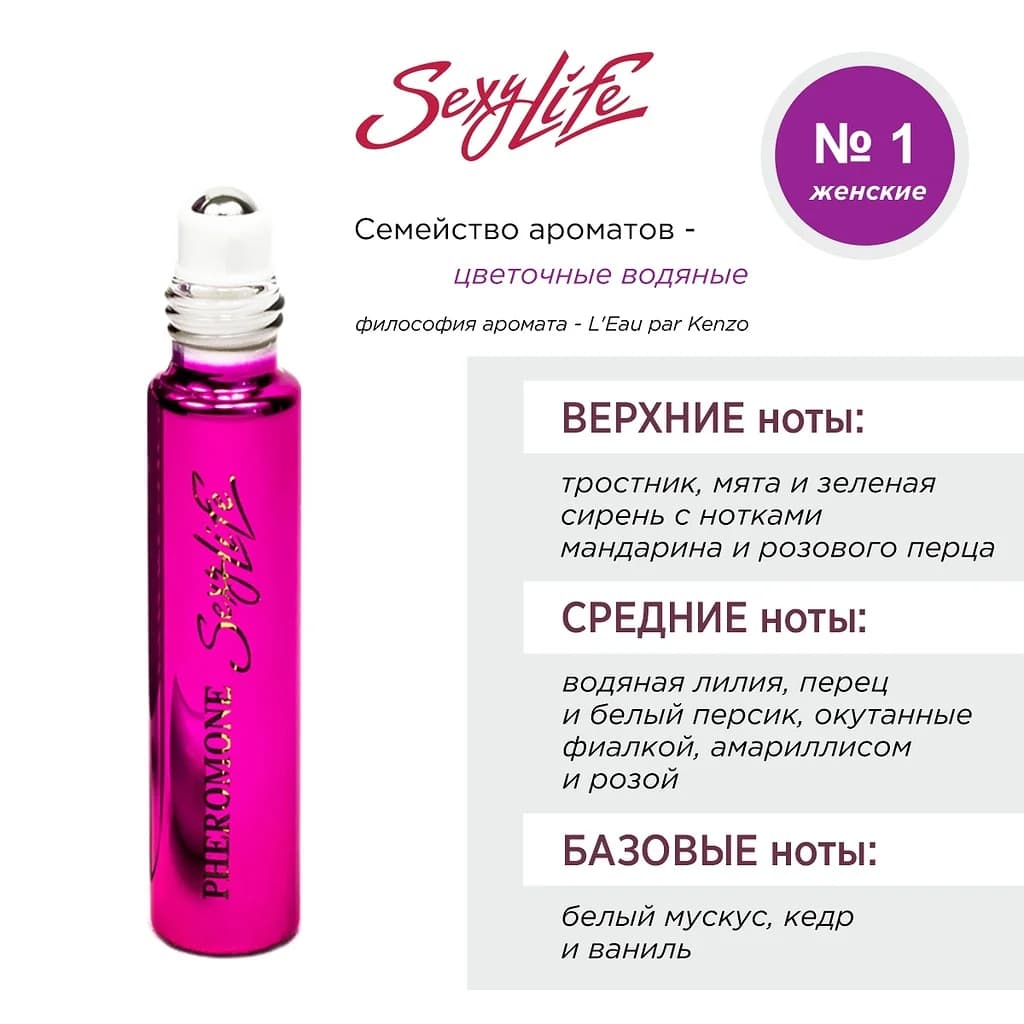 Женские масляные духи с феромонами Sexy Life № 1 — кристально чистая искренняя красота, отраженная в семействе ароматов ЦВЕТОЧНЫЕ ВОДЯНЫЕ.