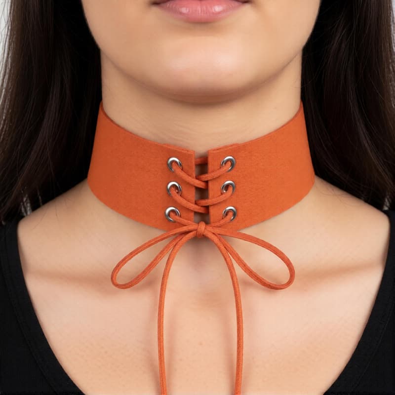Элегантный чокер с тонкой шнуровкой, который можно носить как шнуровкой вперед, так и назад.
