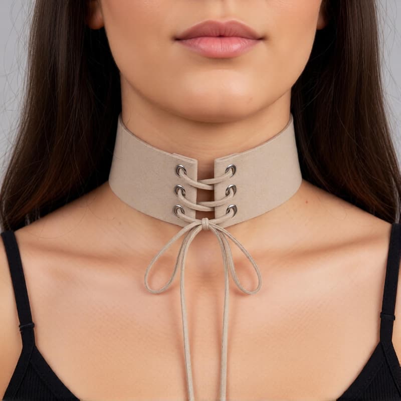 Элегантный чокер с тонкой шнуровкой, который можно носить как шнуровкой вперед, так и назад.