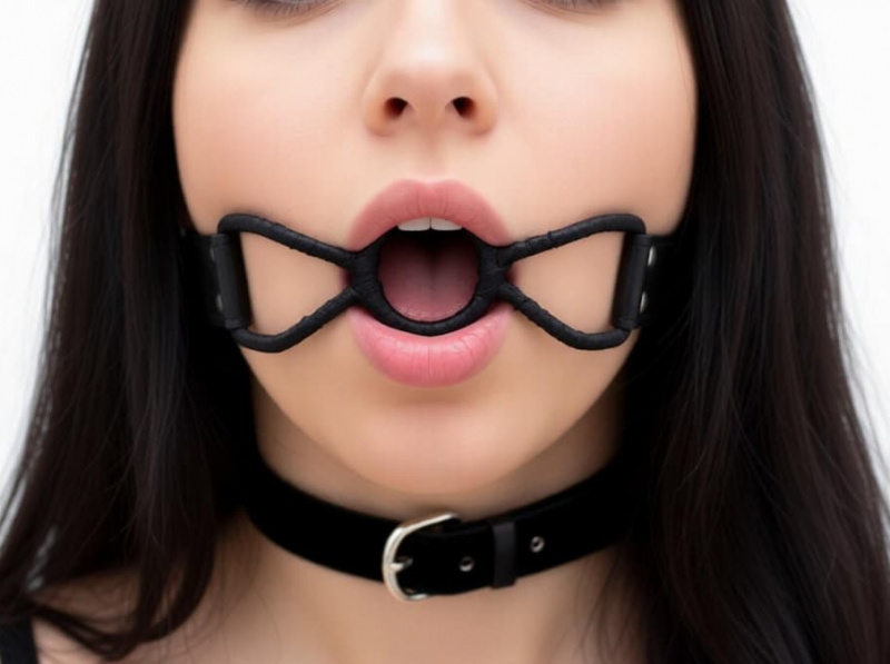 Кляп с металлическим черным кольцом и регулируемым кожаным ремешком. Воплощайте самые смелые фантазии!
