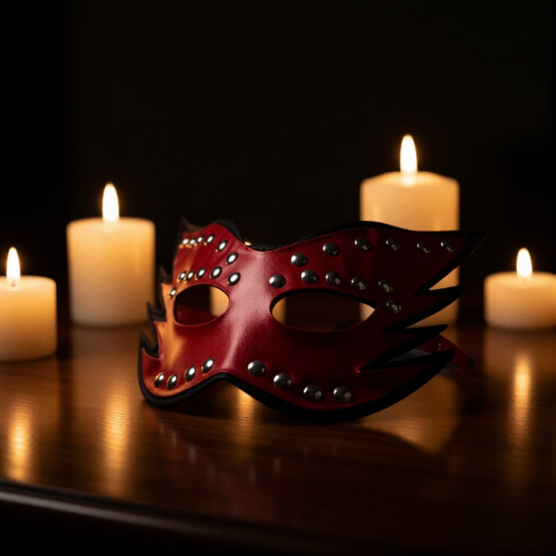 Черно-красная маска Tomiss для глаз из искусственной кожи поможет дополнить Ваш образ и станет одним из элементов интимной игры. Маска декорирована металлическими заклепками.