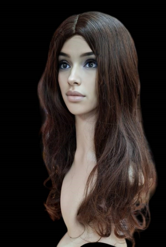 Золотисто-коричневый парик с длинными вьющимися волосами без челки создаст естественный и стильный образ! Длинные вьющиеся волосы придают объём и живость, подчёркивая Вашу женственность и элегантность. Отсутствие челки открывает лицо и делает образ лёгким и воздушным.