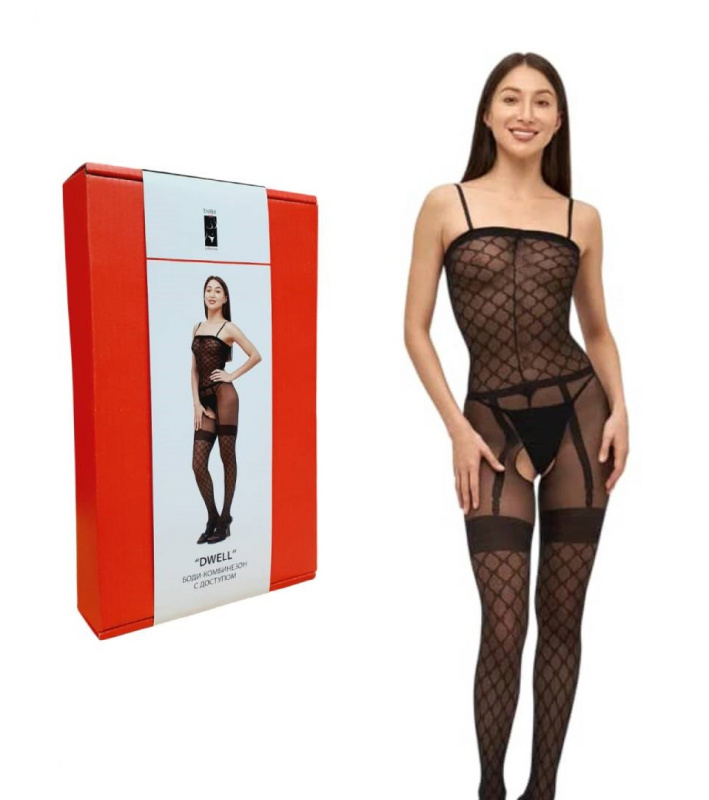 Боди-комбинезон "Dwell" имеет доступ на интимном месте. Геометрический рисунок визуально вытягивает фигуру. Открытая спинка притягивает взгляд и подчеркивает хрупкость силуэта. Завязки завязываются сзади.