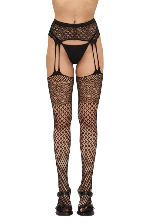 Колготки с доступом (имитация чулки с поясом) CHP-844 ажурная сетка черные