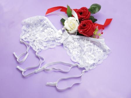 Легкий гипюровый пояс с цветочным орнаментом, для чулочков на резинке. Чулкодержатели регулируются.