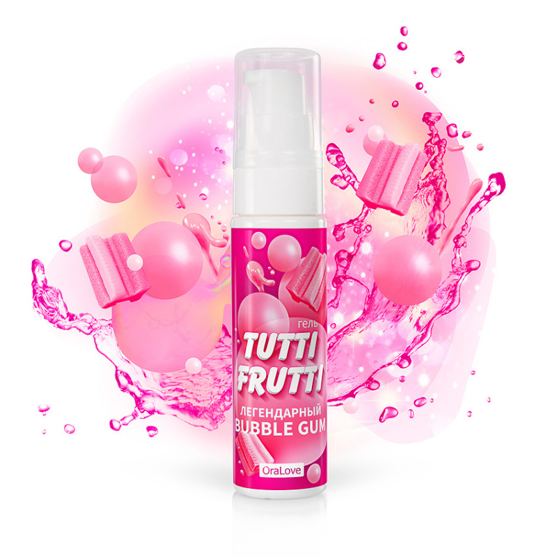 TUTTI-FRUTTI BUBBLE GUM - эротическая феерия чувственности и страсти! Он внесёт яркость и разнообразие в сексуальную жизнь, подарит незабываемые ощущения и сильный оргазм. Сладкий вкус и умопомрачительный аромат геля добавят пикантности любовной игре!
