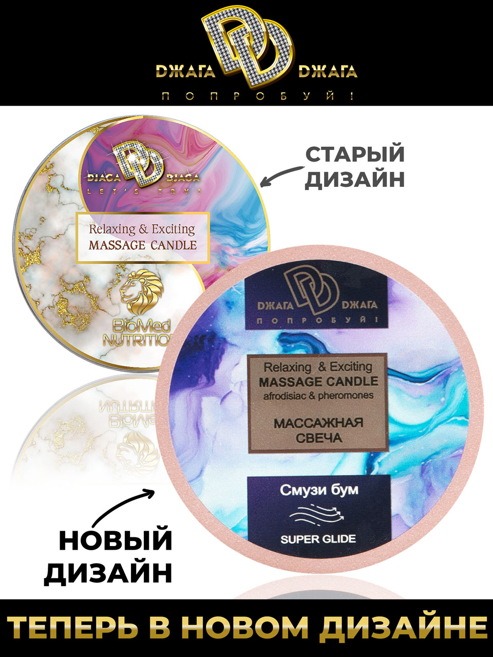 Чувственная массажная свеча "Смузи Бум" с феромонами из 100% натуральных масел настроит и подарит вам романтическую атмосферу. Идеально подходит для всех типов кожи и для всех частей тела. Ощущение блаженства и тепла гарантировано!