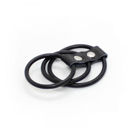 Манжета на пенис из трех гибких латексных колец скрепленная кожаным ремешком - это отличный аксессуар для истинных любителей фетиша.