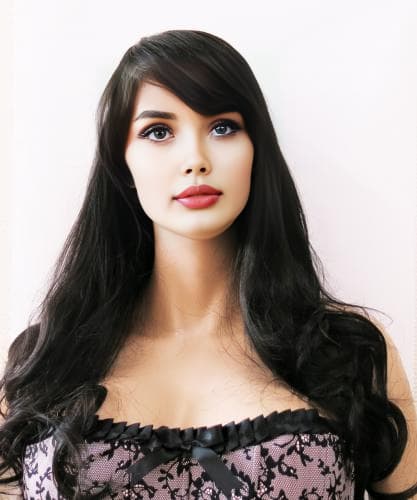 Парик черно-коричневый с челкой с длинными вьющимися волосами