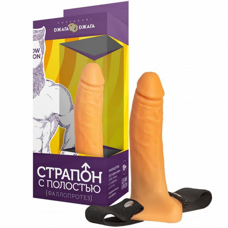 Страпон с полостью для полового члена в спокойном состоянии. К телу крепится эластичным ремнем шириной 3 см. Рекомендуется использовать со смазками на водной основе. Может использоваться как мужчинами со слабой эрекцией, так и женщинами для доминирования.