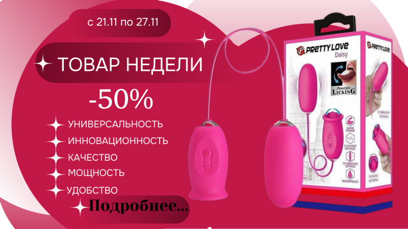 - Двойная сила удовольствия: DAISY – это не просто виброяйцо. Оно обладает 12 режимами вибрации, способными удовлетворить самые разнообразные желания. Но это еще не все! С другой стороны, вас ждет стимулятор эрогенных зон с подвижным язычком, предлагающий 3 режима скорости для точечной стимуляции.